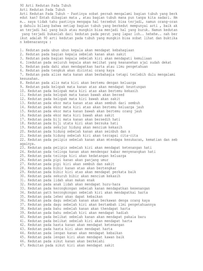 101 Arti Kedutan Disetiap Bagian Tubuh Super Lengkap Arti Kedutan Pdf from imgv2-1-f.scribdassets.com We did not find results for: Maybe you would like to learn more about one of these? Check spelling or type a new query.